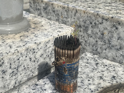 線香からニョキニョキと。
