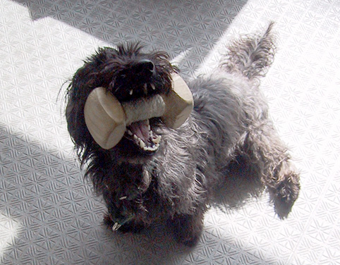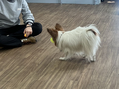 ダンベルを咥えて持ってくるところまではできるようになったみたいですな。